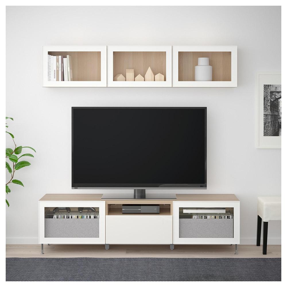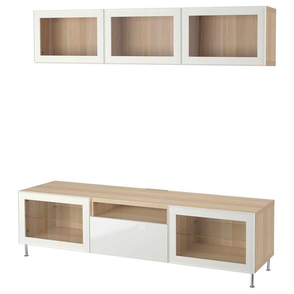 БЕСТО Шкаф для ТВ, комбин/стеклян дверцы - под беленый дуб/Сельсвикен глянцевый/белый прозрачное стекло, направляющие ящика,нажимные 0.0/5 оценка (0 голосов)