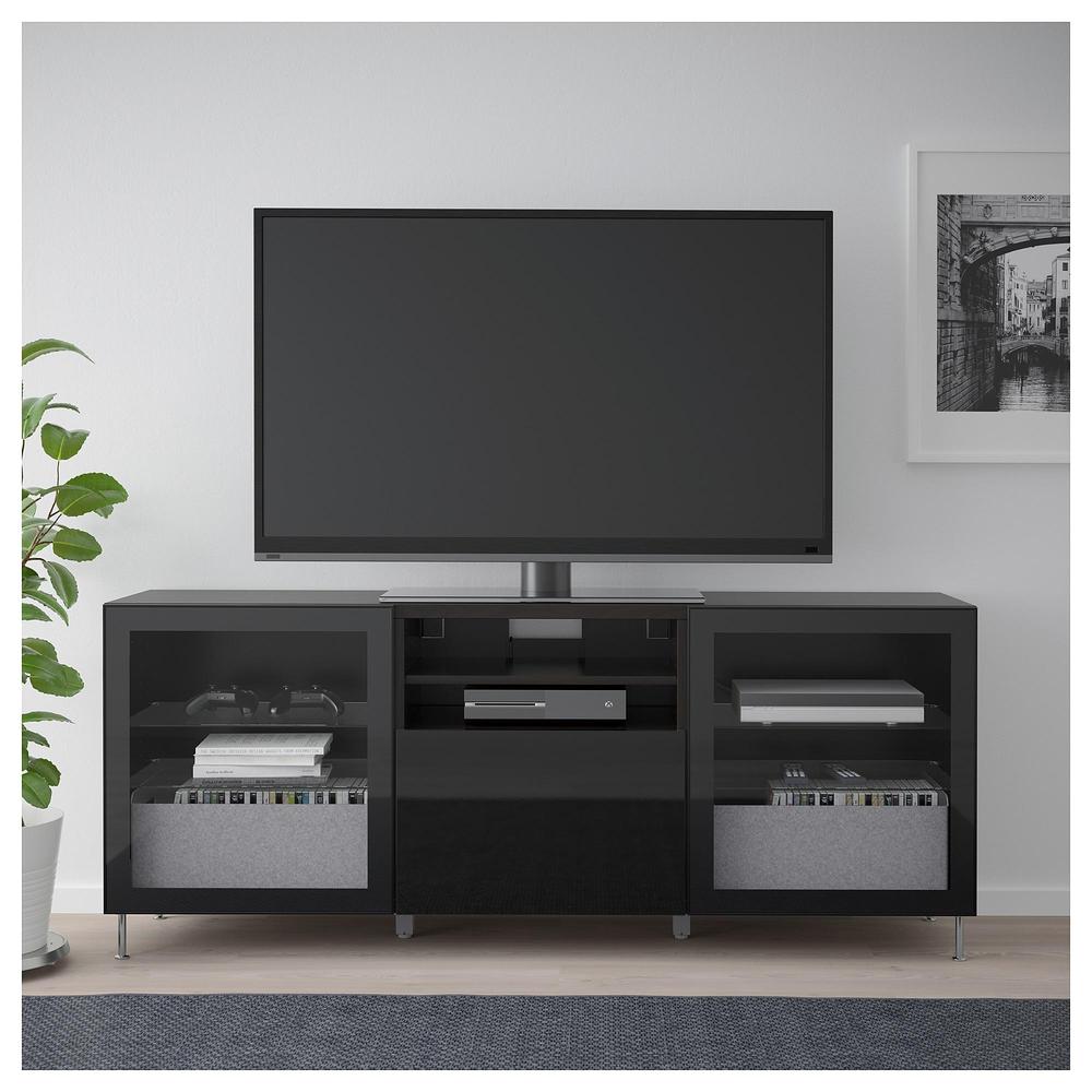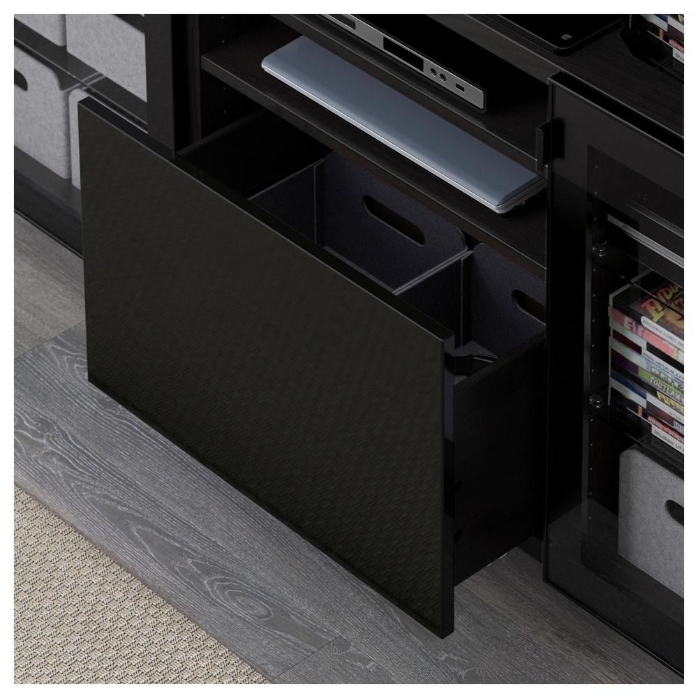 БЕСТО Тумба д/ТВ с ящиками - черно-коричневый глянцевый/черный прозрачное стекло, направляющие ящика,нажимные