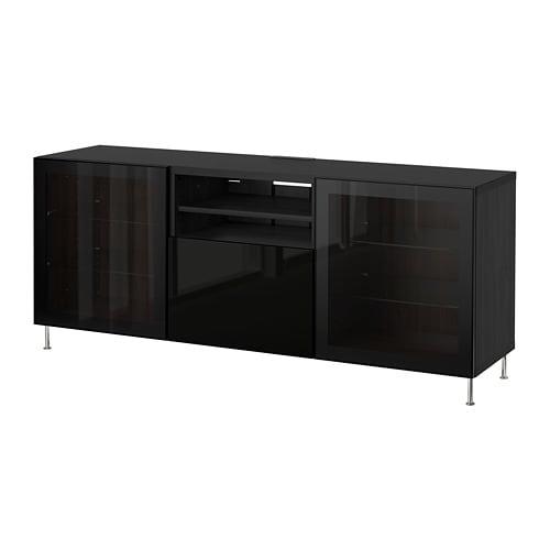 БЕСТО Тумба д/ТВ с ящиками - черно-коричневый глянцевый/черный прозрачное стекло, направляющие ящика, плавно закр