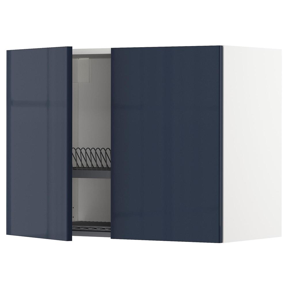 МЕТОД Навесной шкаф с посуд суш/2 дврц - белый, Ерста глянцевый черно-синий, 80x60 см