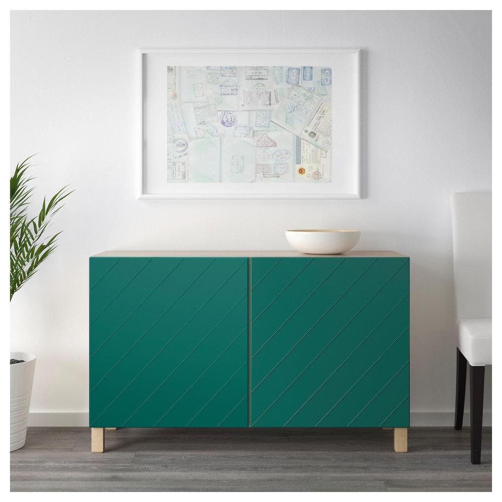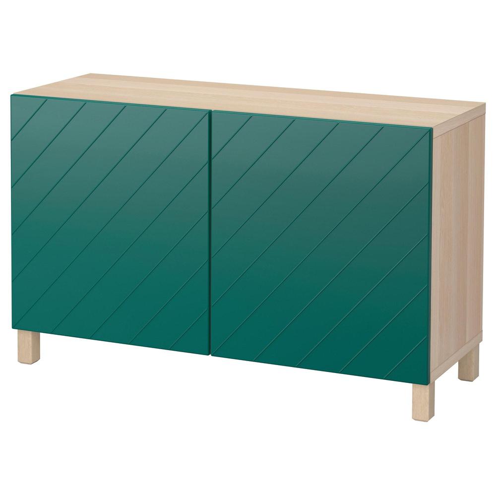 БЕСТО Комбинация для хранения с дверцами - под беленый дуб/Халлставик сине-зеленый 0.0/5 оценка (0 голосов)