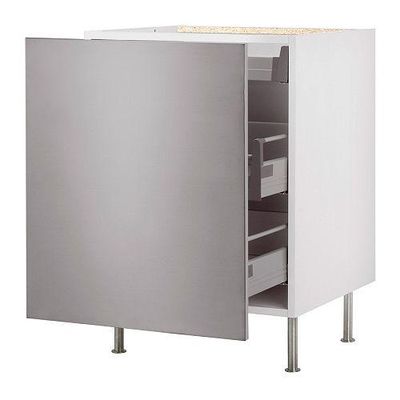 ФАКТУМ Напольный шкаф с выдвижной секцией - Рубрик нержавеющ сталь, 60 см