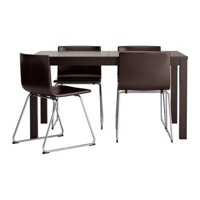 БЬЮРСТА/БЕРНГАРД Стол и 4 стула - , хромированный/Кават темно-коричневый, 140 см