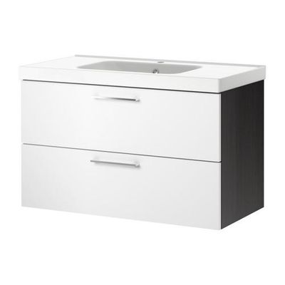 ГОДМОРГОН/ОДЕНСВИК Шкаф для раковины с 2 ящ - черно-коричневый/белый