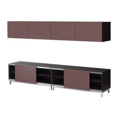 БЕСТО Комбинация для хран с раздв дверц - черно-коричневый/сиреневый