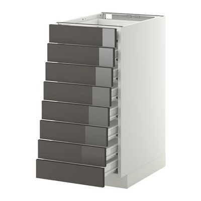 МЕТОД / ФОРВАРА Наполн шкаф 8 фронт/8 низк ящиков - 40x60 см, Рингульт глянцевый серый, белый