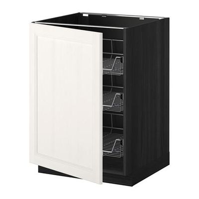 МЕТОД Напольный шкаф с проволочн ящиками - 60x60 см, Лаксарби белый, под дерево черный