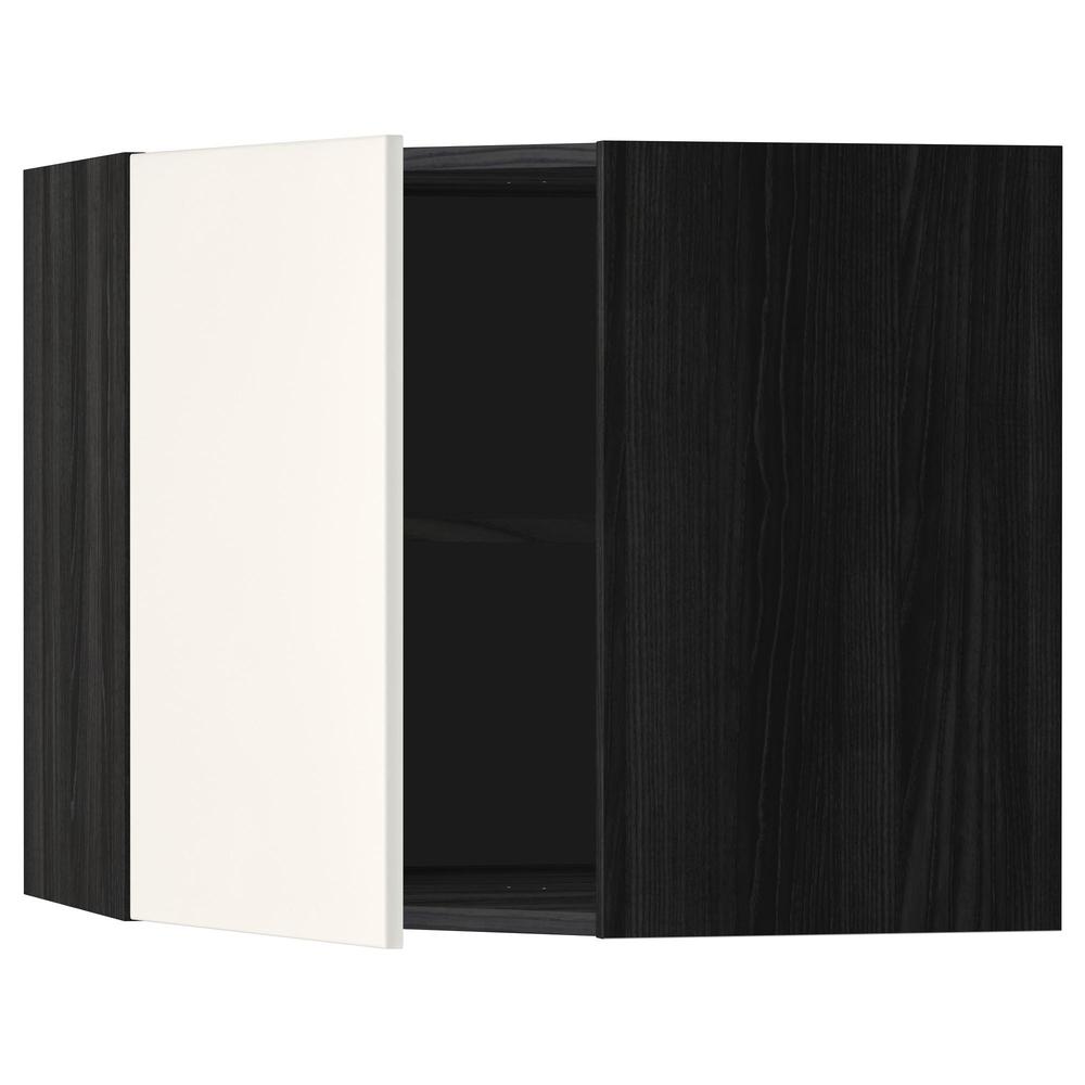МЕТОД Угловой навесной шкаф с полками - под дерево черный, Веддинге белый, 68x60 см