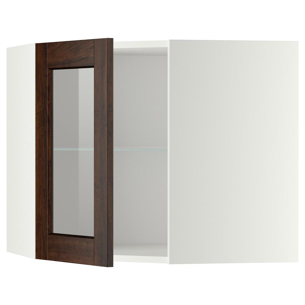 МЕТОД Углов навесн шк с полками/сткл дв - белый, Эдсерум под дерево коричневый, 68x60 см