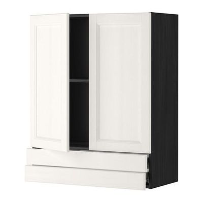 МЕТОД / ФОРВАРА Навесной шкаф/2дверцы/2ящика - 80x100 см, Лаксарби белый, под дерево черный