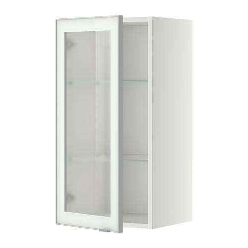 МЕТОД Навесной шкаф с полками/стекл дв - белый, Ютис матовое стекло/алюминий, 40x80 см
