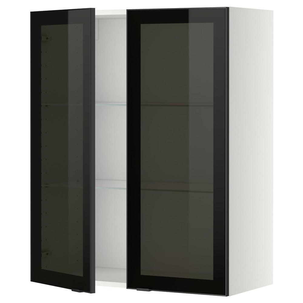 МЕТОД Навесной шкаф с полками/2 стекл дв - белый, Ютис дымчатое стекло/черный, 80x100 см