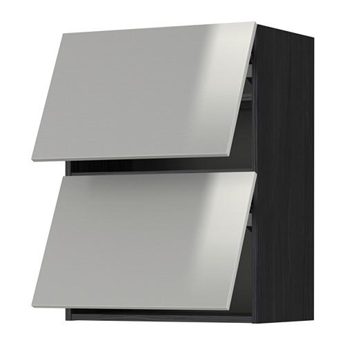 МЕТОД Навесной шкаф/2 дверцы, горизонтал - под дерево черный, Гревста нержавеющ сталь, 60x80 см
