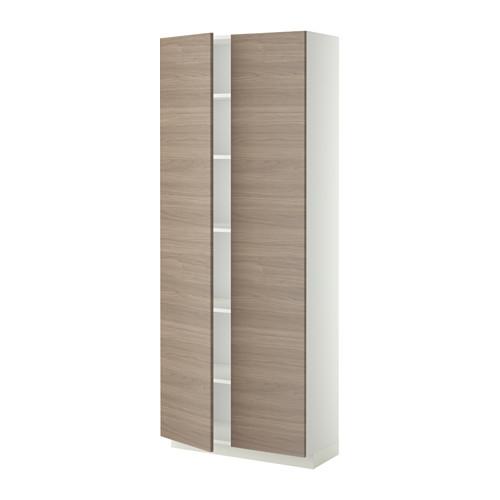 МЕТОД Высок шкаф с полками - 80x37x200 см, Брокхульт под грецкий орех светло-серый, белый