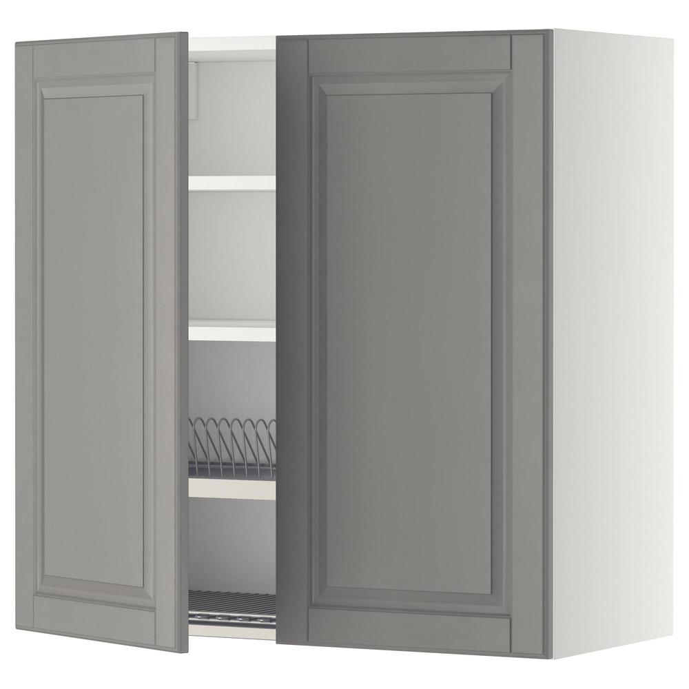 МЕТОД Навесной шкаф с посуд суш/2 дврц - белый, Будбин серый, 80x80 см