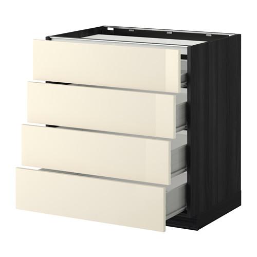 МЕТОД / ФОРВАРА Напольн шкаф/4фронт пнл/4ящика - 80x60 см, Рингульт глянцевый кремовый, под дерево черный