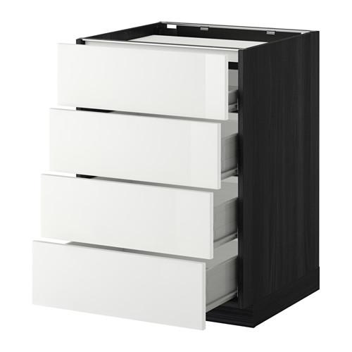 МЕТОД / ФОРВАРА Напольн шкаф/4фронт пнл/4ящика - 60x60 см, Рингульт глянцевый белый, под дерево черный