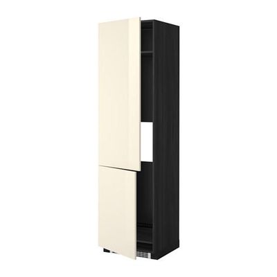 МЕТОД Высокий шкаф д/холод/мороз/2дверцы - Рингульт глянцевый кремовый, под дерево черный