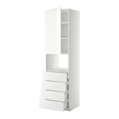 МЕТОД / ФОРВАРА Высок шкаф д/духовки/дверца/4ящика - 60x60x220 см, Рингульт глянцевый белый, белый