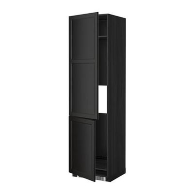 МЕТОД Высокий шкаф д/холод/мороз/2дверцы - Лаксарби черно-коричневый, под дерево черный