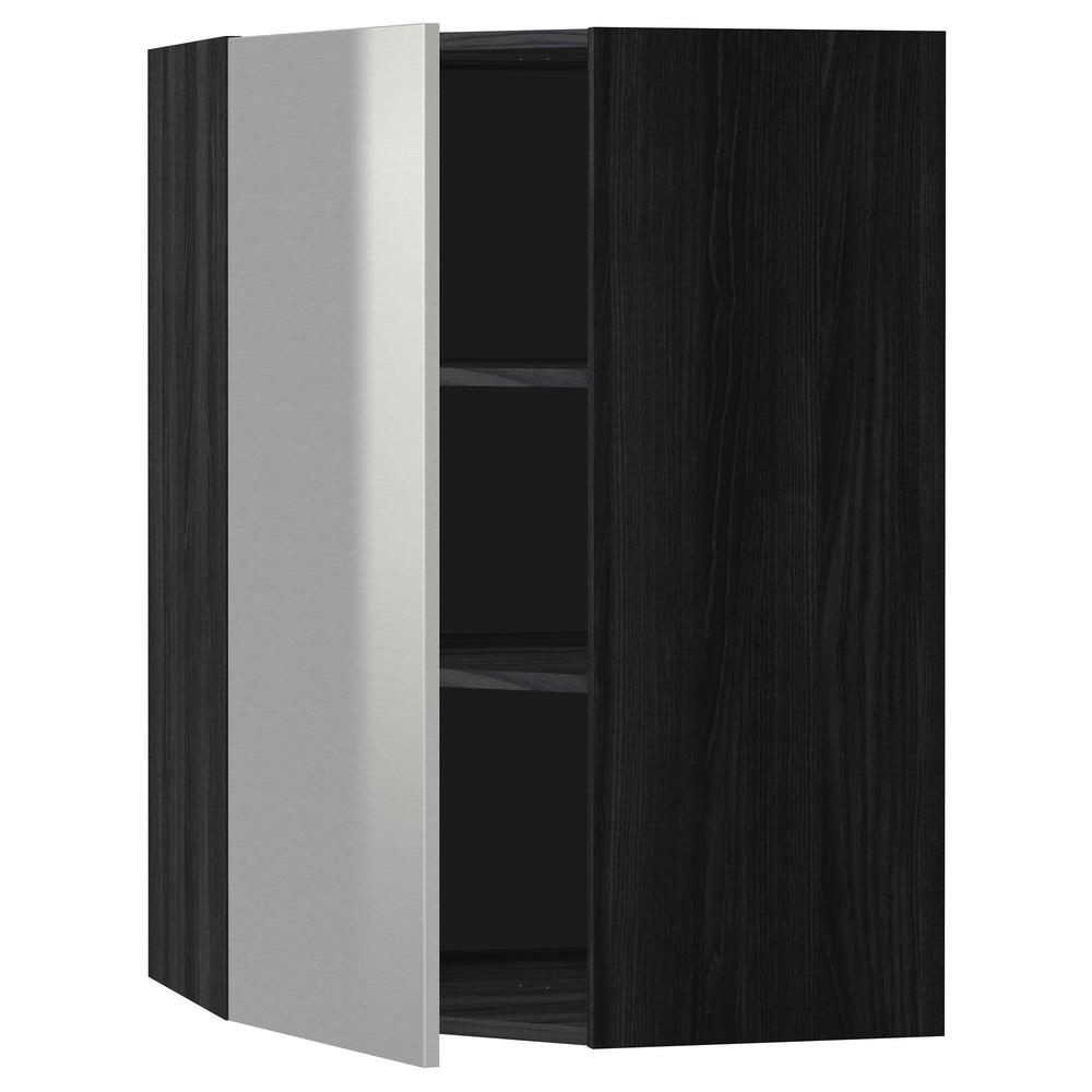 МЕТОД Угловой навесной шкаф с полками - под дерево черный, Гревста нержавеющ сталь, 68x100 см