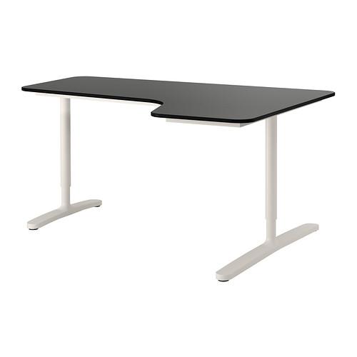 БЕКАНТ Углов письм стол правый - черно-коричневый/белый