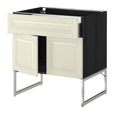 МЕТОД / ФОРВАРА Напол шкаф/полки/ящик/2двери - Будбин белый с оттенком, под дерево черный