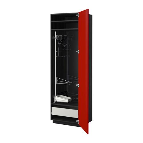 МЕТОД / ФОРВАРА Выс шк с отд д/акс д/убрк - 60x60x200 см, Рингульт глянцевый красный, под дерево черный