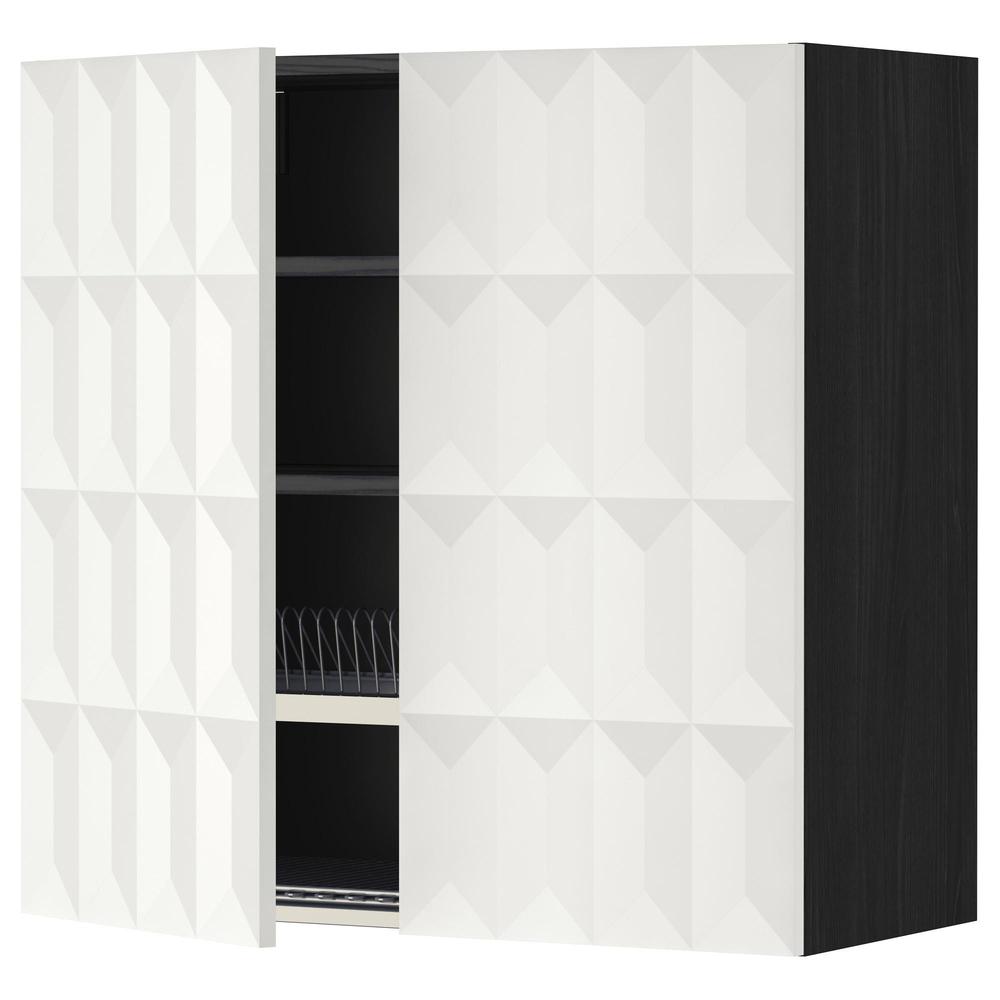 МЕТОД Навесной шкаф с посуд суш/2 дврц - под дерево черный, Гэррестад белый, 80x80 см