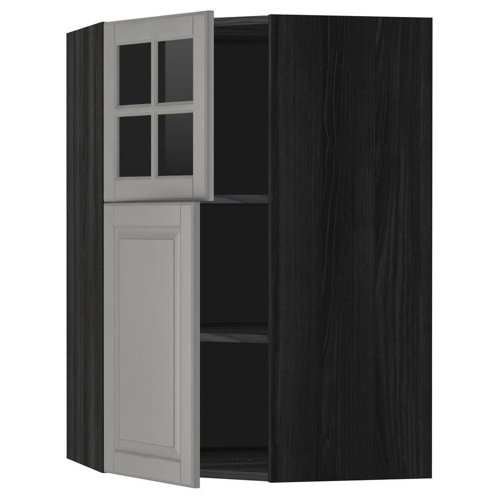 МЕТОД Угл навесн шкаф+полки/1дв/1 стек дв - под дерево черный, Будбин серый