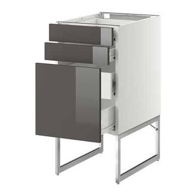 МЕТОД / ФОРВАРА Напольн шкаф 3фронт пнл/2низ/2ср ящ - 40x60x60 см, Рингульт глянцевый серый, белый