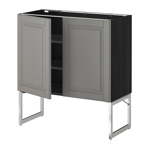 МЕТОД Напол шкаф с полками/2двери - под дерево черный, Будбин серый, 80x37x60 см
