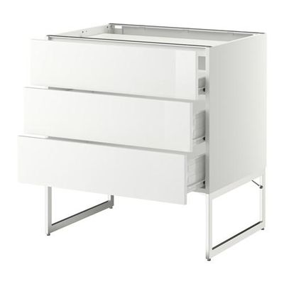 МЕТОД / ФОРВАРА Напольн шкаф/3фронт пнл/3ящика - 80x60x60 см, Рингульт глянцевый белый, белый