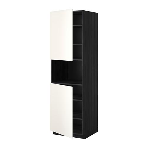 МЕТОД Выс шкаф д/СВЧ/2 дверцы/полки - под дерево черный, Веддинге белый, 60x60x200 см