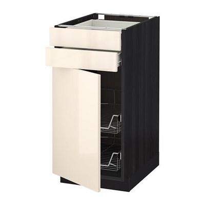 МЕТОД / ФОРВАРА Напольн шкаф/дверца/2ящ/првл крзн - 40x60 см, Рингульт глянцевый кремовый, под дерево черный