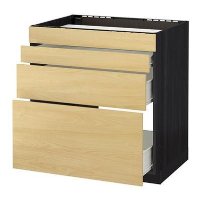МЕТОД / ФОРВАРА Нап шкаф д/духовки/4фасада/3ящика - 80x60 см, Тингсрид под березу, под дерево черный