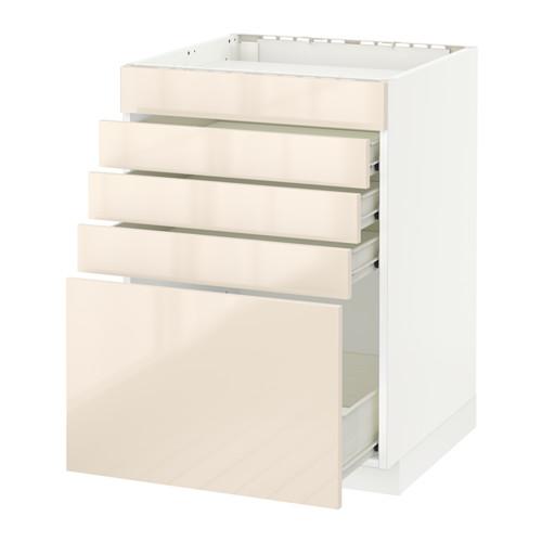 МЕТОД / ФОРВАРА Напольн шк д/вар панели/5фасад/4ящ - 60x60 см, Рингульт глянцевый кремовый, белый
