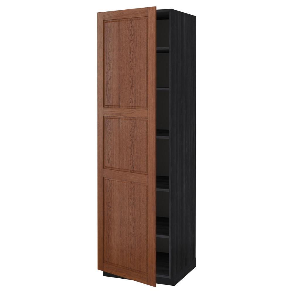 МЕТОД Высок шкаф с полками - под дерево черный, Филипстад коричневый, 60x60x200 см