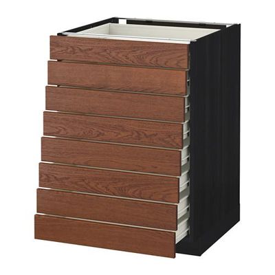 МЕТОД / ФОРВАРА Наполн шкаф 8 фронт/8 низк ящиков - 60x60 см, Филипстад коричневый, под дерево черный