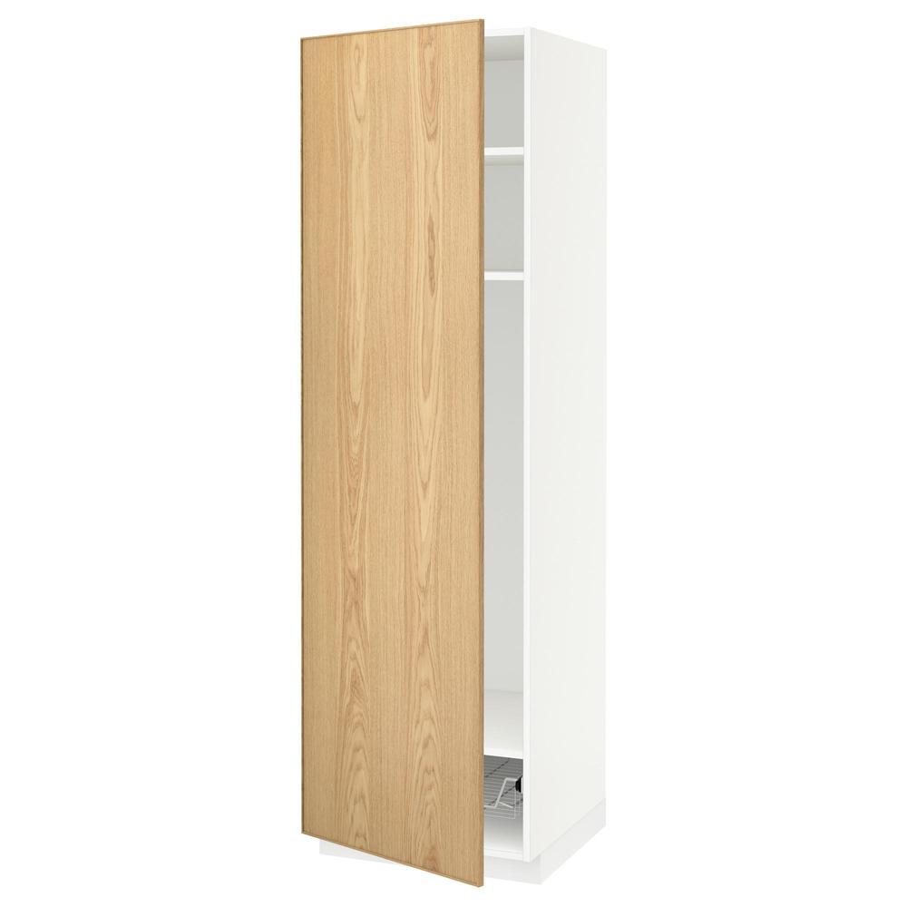 МЕТОД Выс шкаф с полками/проволоч корзин - белый, Экестад дуб, 60x60x200 см