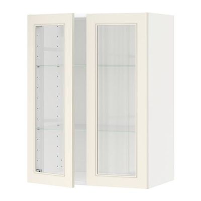 МЕТОД Навесной шкаф с полками/2 стекл дв - 60x80 см, Хитарп белый с оттенком, белый