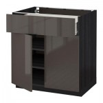 МЕТОД / ФОРВАРА Напольный шкаф+ящик/2дверцы - 80x37 см, Рингульт глянцевый серый, под дерево черный