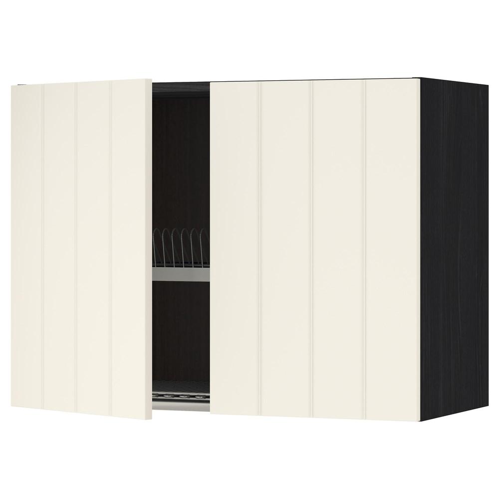 МЕТОД Навесной шкаф с посуд суш/2 дврц - под дерево черный, Хитарп белый с оттенком, 80x60 см