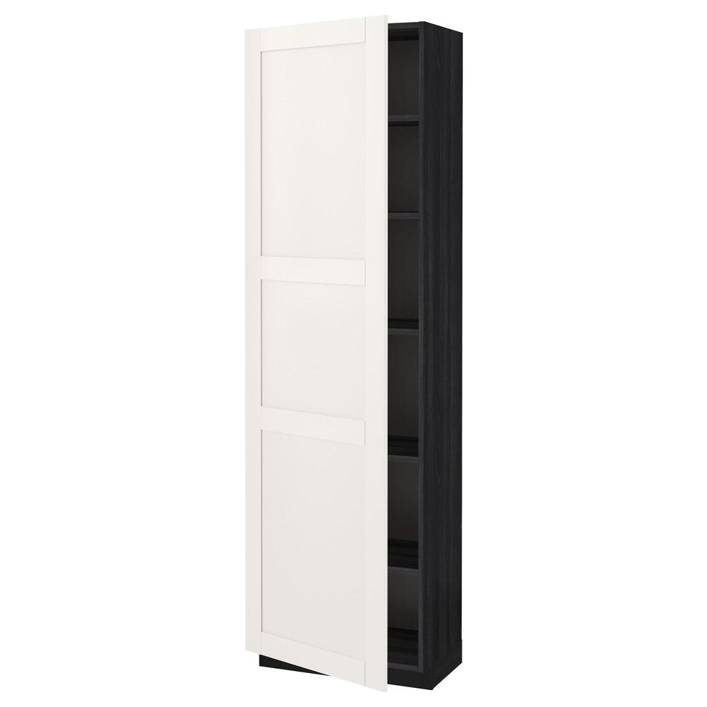 МЕТОД Высок шкаф с полками - под дерево черный, Сэведаль белый, 60x37x200 см