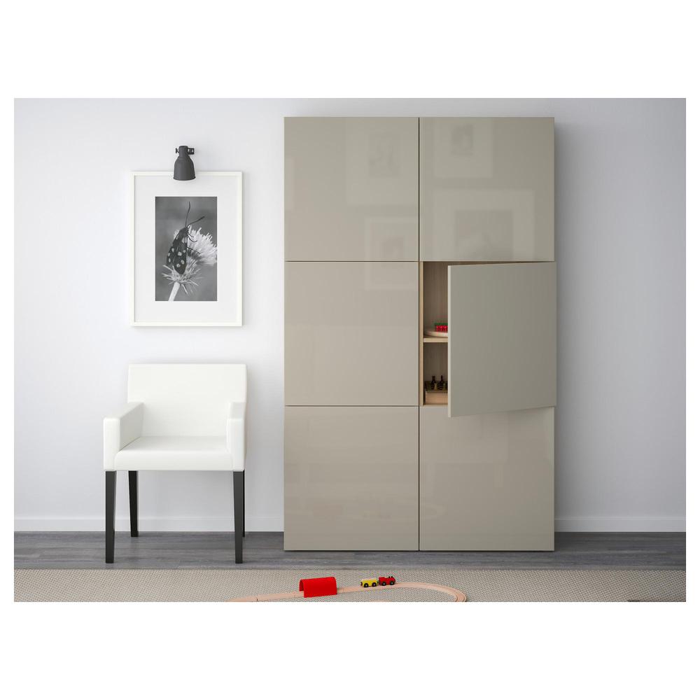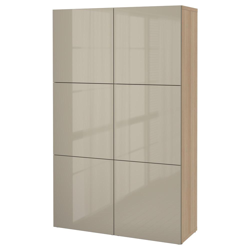 БЕСТО Комбинация для хранения с дверцами - под беленый дуб/Сельсвикен глянцевый/бежевый