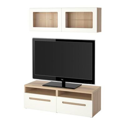 БЕСТО Шкаф для ТВ, комбин/стеклян дверцы - под беленый дуб/Марвикен белый прозрачное стекло, направляющие ящика, плавно закр