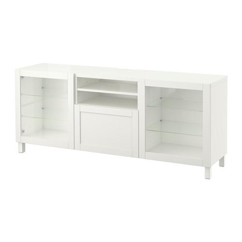 БЕСТО Тумба д/ТВ с ящиками - Ханвикен/Синдвик белый прозрачное стекло, направляющие ящика,нажимные