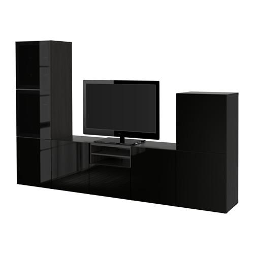 БЕСТО Шкаф для ТВ, комбин/стеклян дверцы - черно-коричневый/Сельсвикен глянцевый/черный дымчатое стекло, направляющие ящика,нажимные
