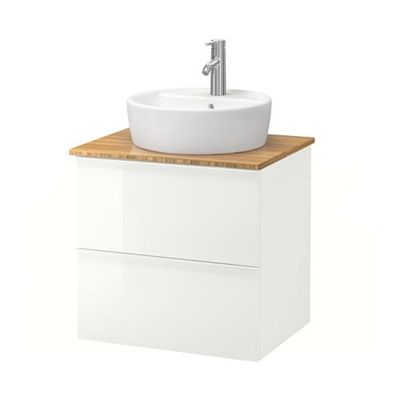 ГОДМОРГОН/АЛДЕРН / ТОРНВИКЕН Шкаф п-раковину/столешн45/раковина - бамбук, глянцевый белый