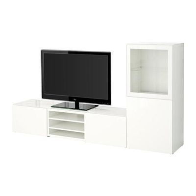 БЕСТО Шкаф для ТВ, комбин/стеклян дверцы - направляющие ящика,нажимные, белый/Сельсвикен глянцевый/белый прозрачное стекло